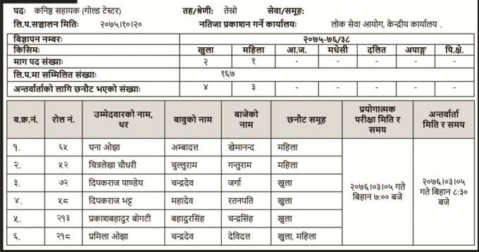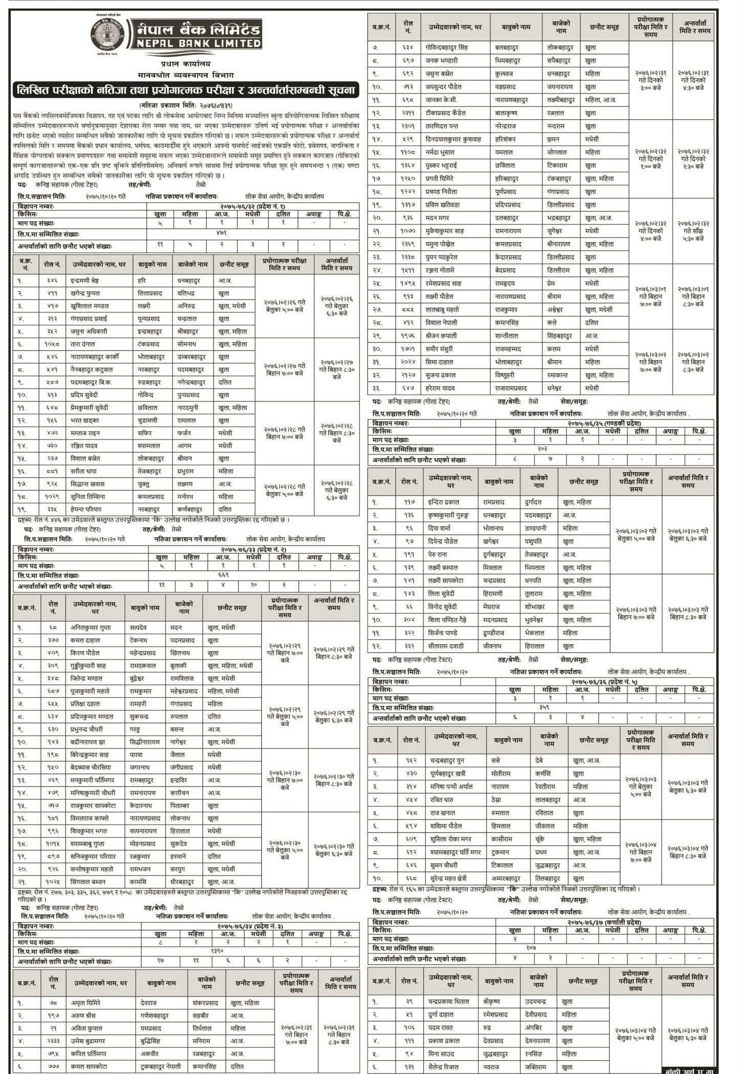 नारीकोसिस डटकम जेठ ३, काठमाडौं । नेपाल बैंक लिमिटेडले विभिन्न पदका लागि खुलाएको विज्ञापनअनुसार लिखित परीक्षामा सहभागि उम्मेदवारको नतिजा सार्वजनिक भएको छ ।