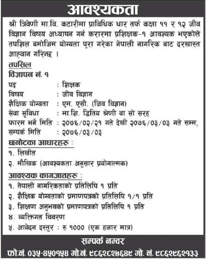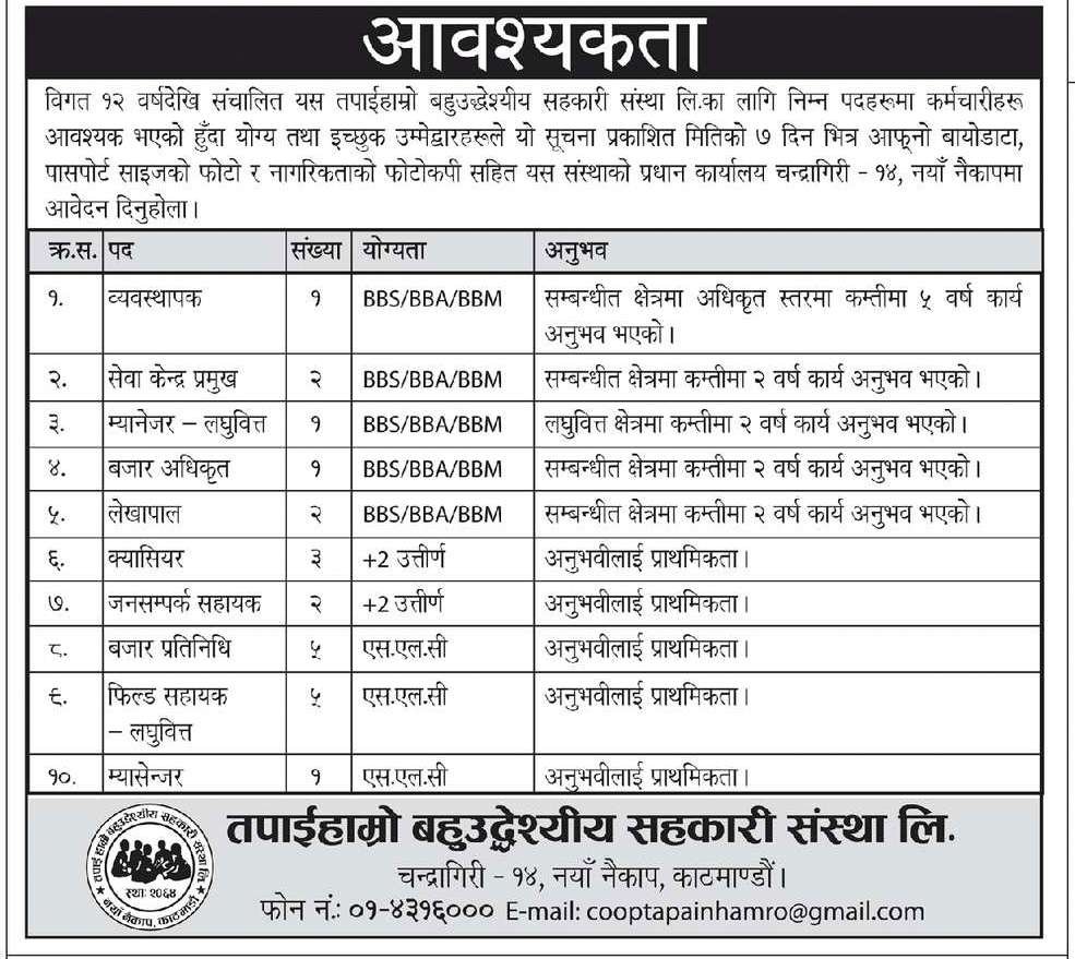 नारीकोसिस डटकम/जेठ २१, काठमाडौं । के तपाई रोजगारीको खोजीमा हुनुहुन्छ र पाइरहनु भएको छैन ? मंगलबारको कान्तिपुर दैनिकमा रोजगारीसम्बन्धी विभिन्न सूचना प्रकाशित भएको छ, जुन तपाईको लागि पो अनुकूल हुन्छ कि ।