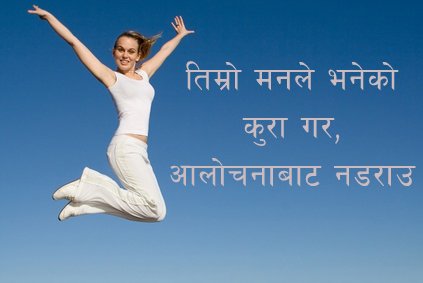 धेरैजसो समय हामी अरुको खुशी र आफ्नो खुशीका बीचमा दुविधामा पर्छौ । आफूलाई, आफ्नो खुशी र आफ्नो रुचीलाई पनि महत्व दिनुहोस् । ख्याल राख्नुहोस् कि, तपाईले लिने निर्णयले तपाईको जीवनमा दिर्घकालिन असर पर्ने छैन ।