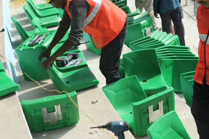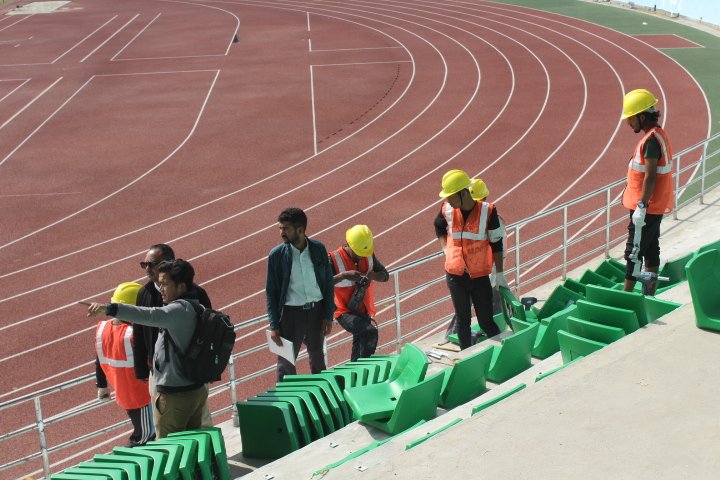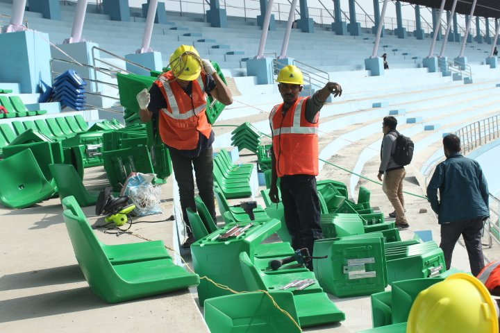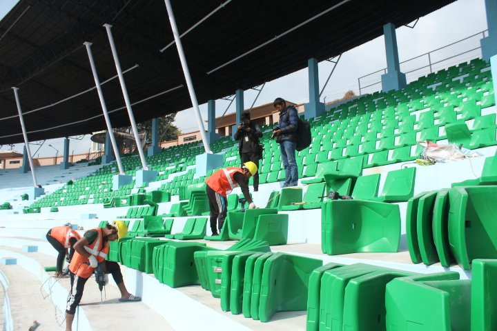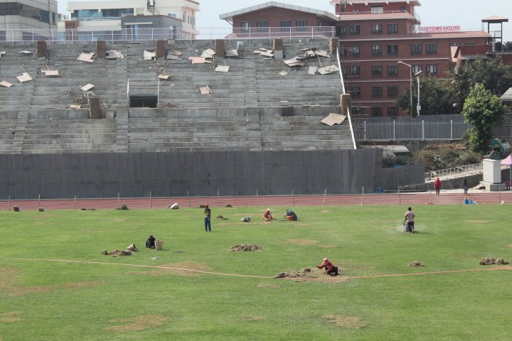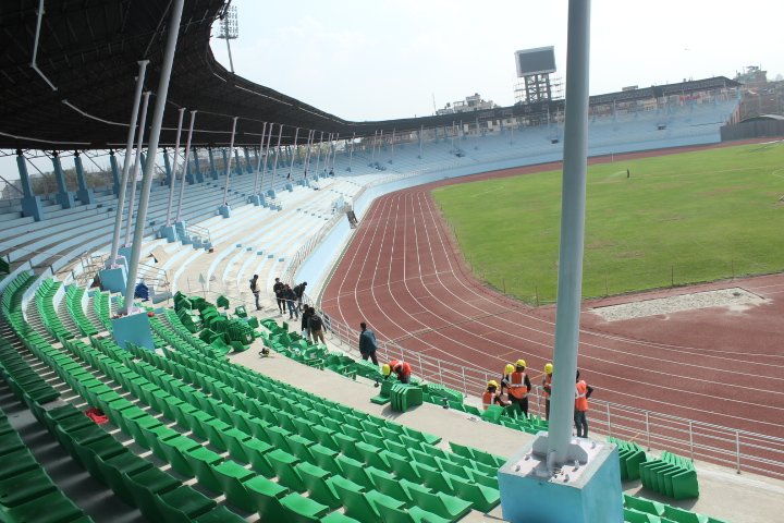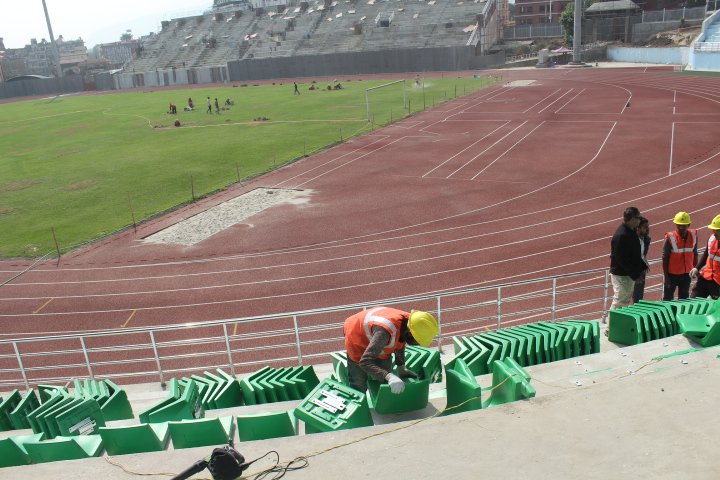 नारीकोसिस डटकम /कात्तिक १५, काठमाडौं । दक्षिण एसियाली खेलकुद (साग)को मिति नजिकिँदै जाँदा काठमाडौंको त्रिपुरेश्वरस्थित दशरथ रंगशालाको प्याराफिटमा सिट जडानको काम धमाधम भइरहेको छ ।