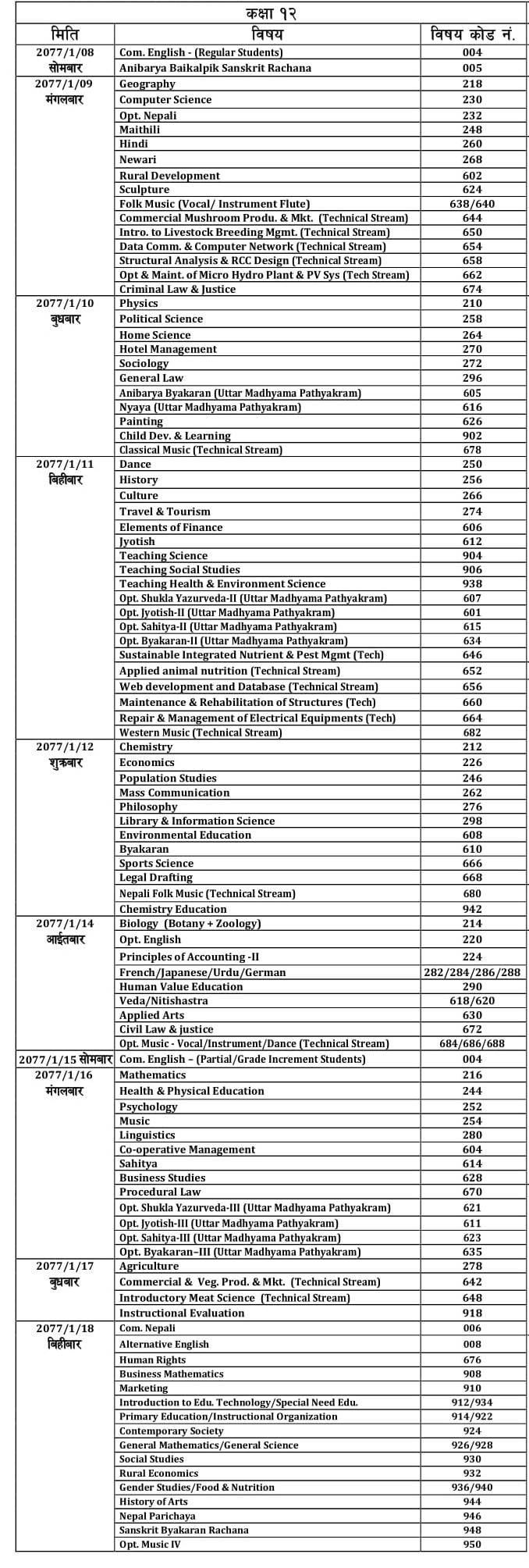 कक्षा ११ र १२ को वार्षिक परीक्षा बैशाख देखि (तालिकासहित)